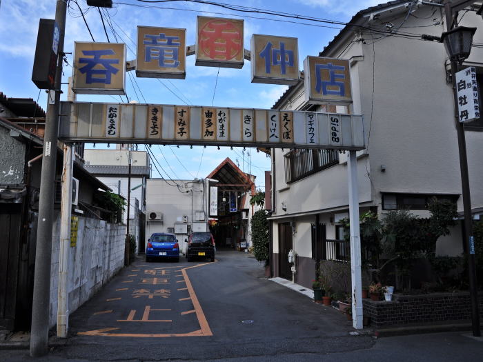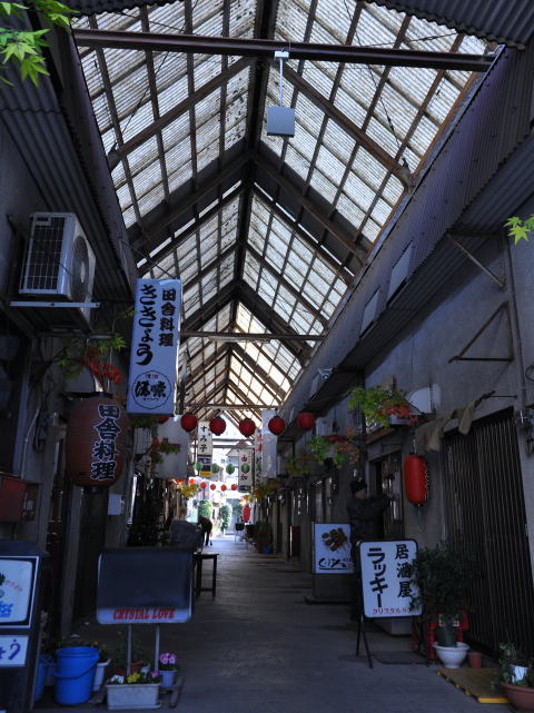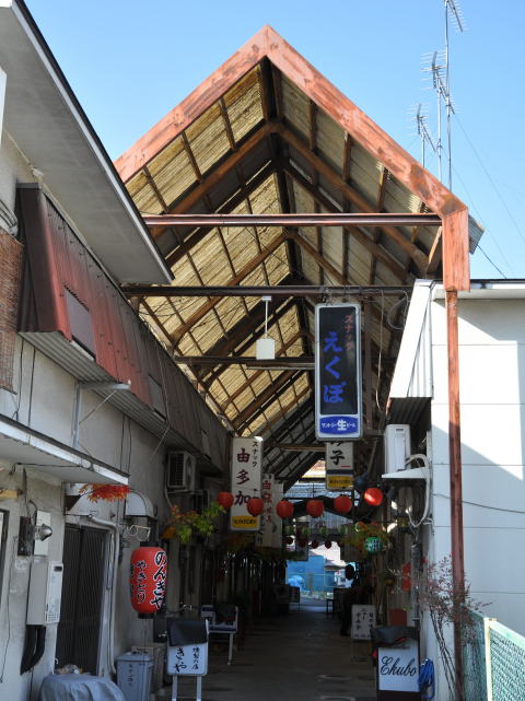 アーケードに覆われた飲み屋街です。