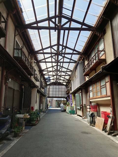 生駒駅前の木造アーケード