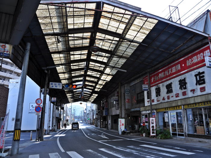 全長45m程の短いアーケードが、県道19号線を覆っています。